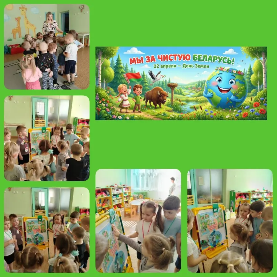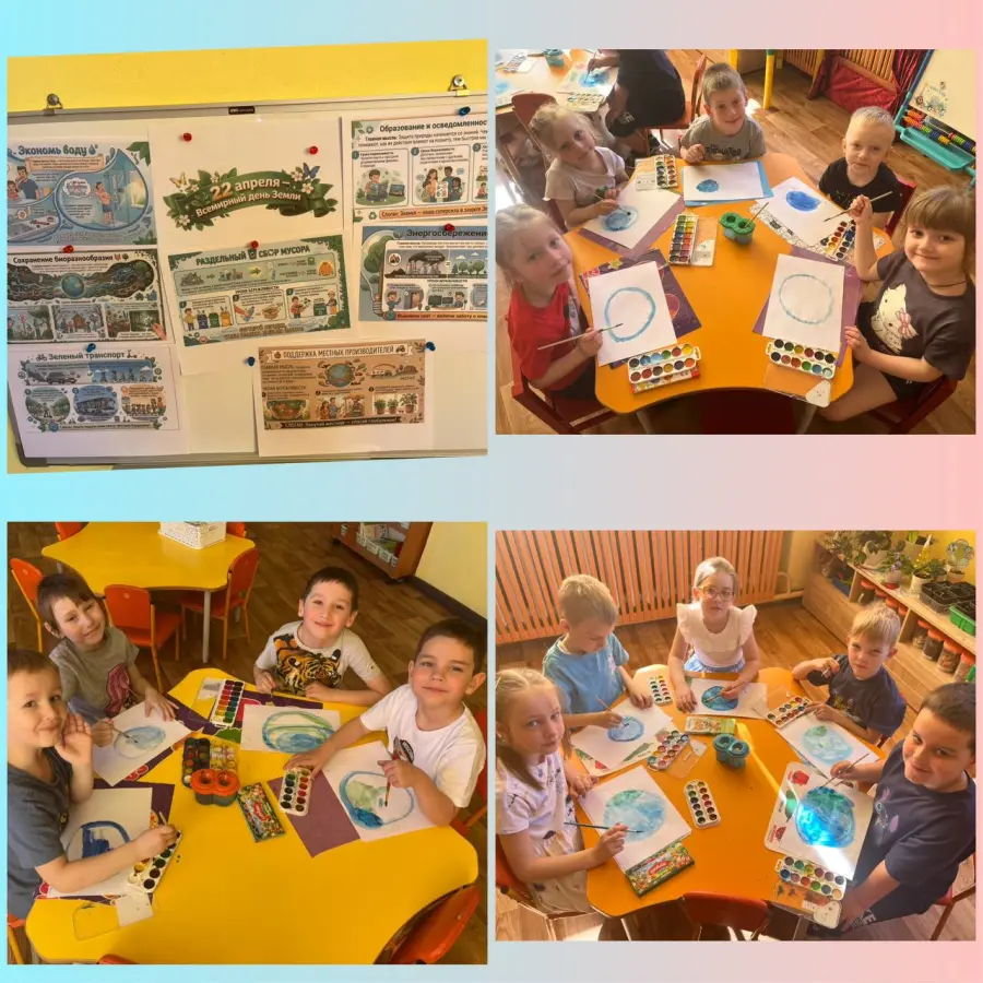 Дети рассмотрели иллюстрации «Земля – это наш дом и мы должны его беречь», где наглядно могли увидеть как красива наша планета, животный и растительный мир, счастливые лица людей. Также, воспитанники узнали, почему гибнет все живое и как люди могут помочь сохранить красоту Земли. Педагоги вместе с детьми вспомнили «Правила поведения на природе», рассматривали глобус, изготовили стенгазеты «Украсим планету цветами» и «День Земли», коллективную аппликацию «Берегите нашу Землю» и нарисовали нашу зелёную планету.